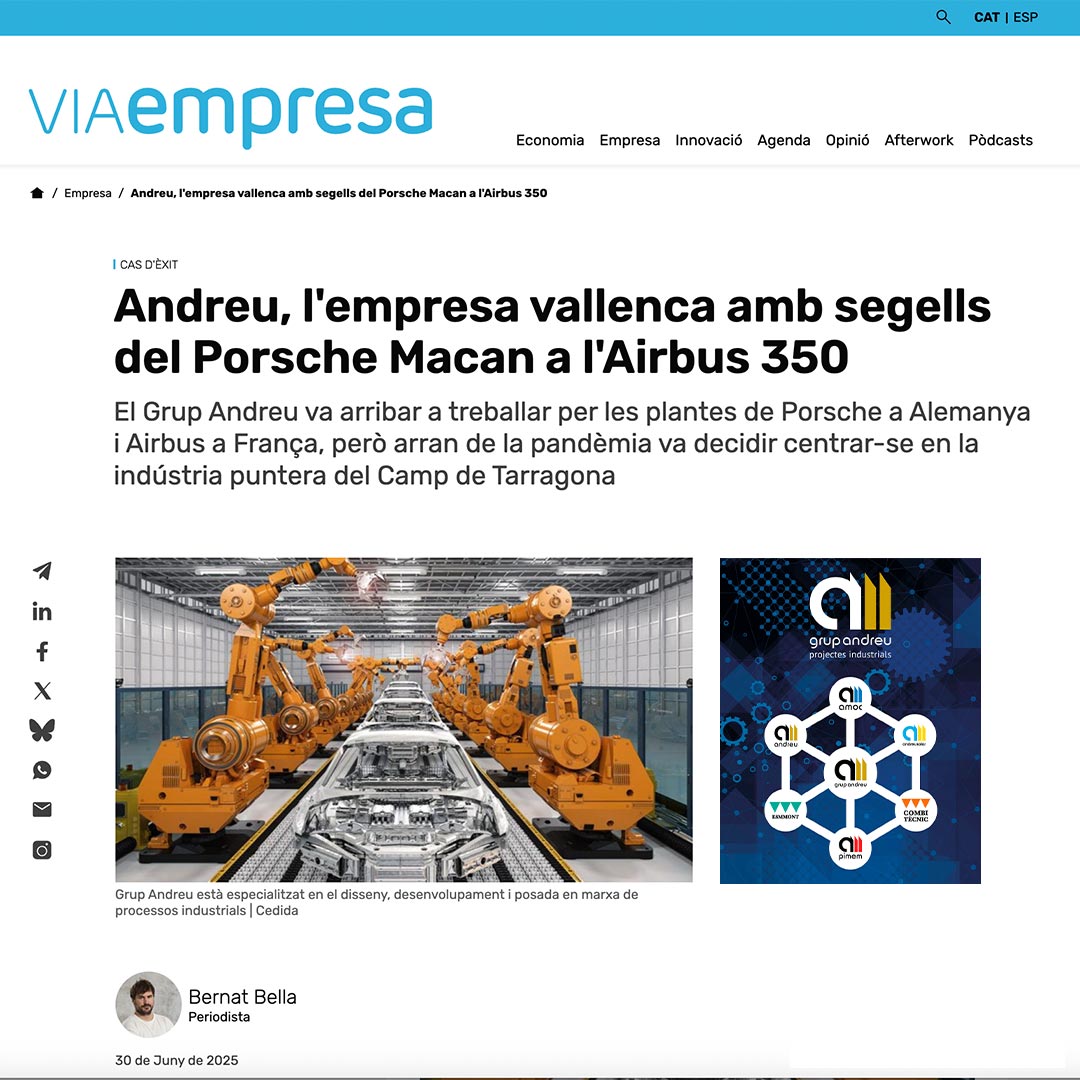 Nous vous invitons à lire le reportage que le journaliste Bernat Bella a publié dans le prestigieux média numérique VIA EMPRESA, sur les débuts du Grup Andreu, sa trajectoire et le